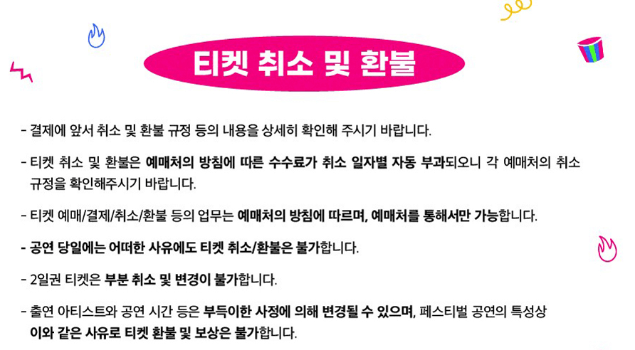 • 티켓 구매 후 취소 및 환불 규정을 반드시 확인하세요.
